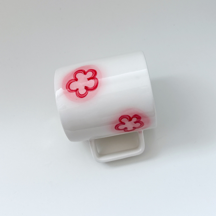 수작업으로 그려진 키치한 레드 플라워는 각 한 점 한 점 모든 제품에 다른 패턴들이 그려지는 점이 특징입니다.