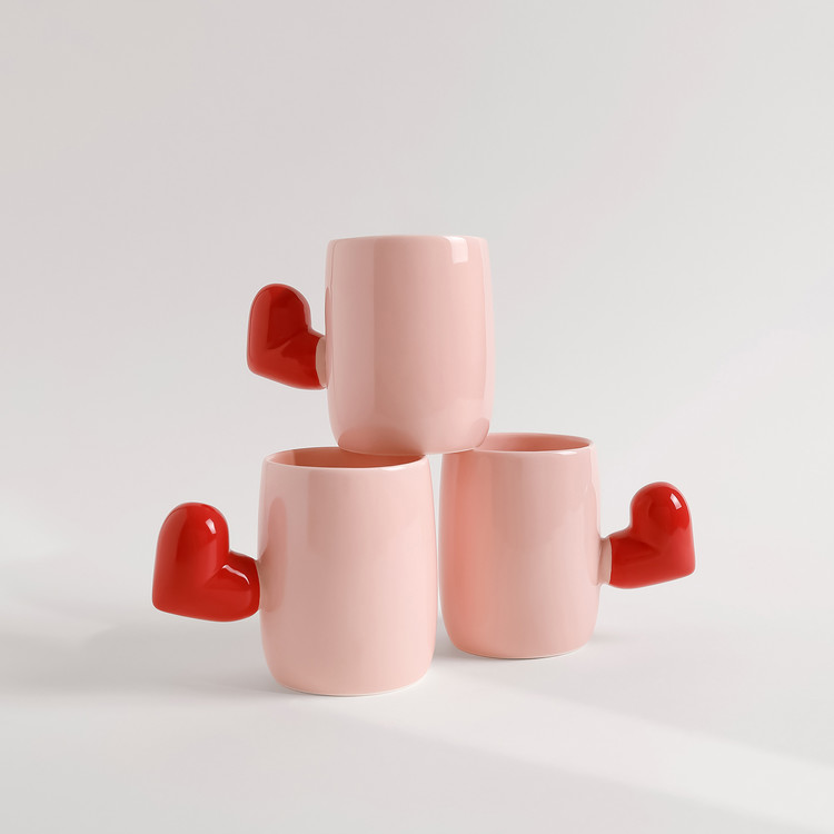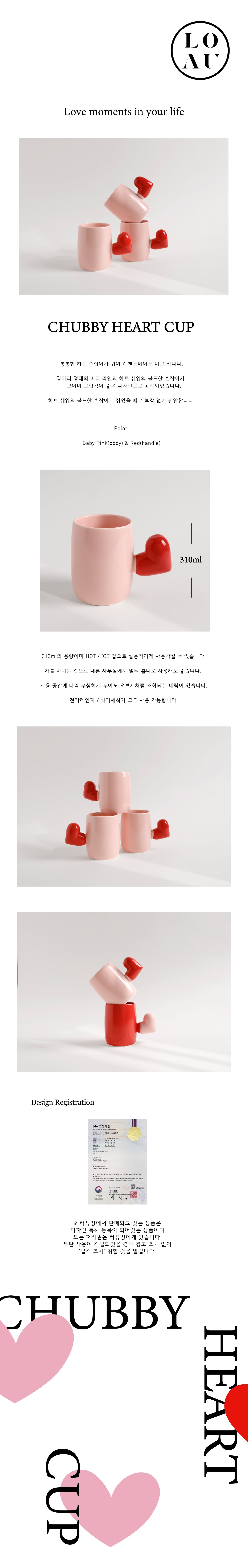 통통한 하트 손잡이가 귀여운 핸드메이드 머그 입니다.