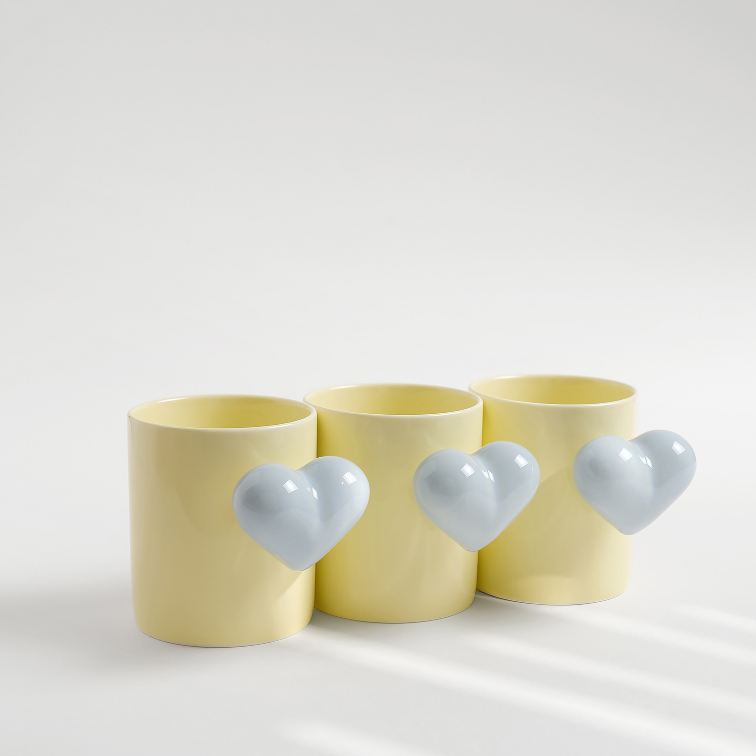 크고 통통한 하트 손잡이가 포인트인 핸드메이드 머그 입니다.