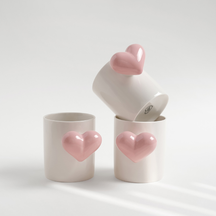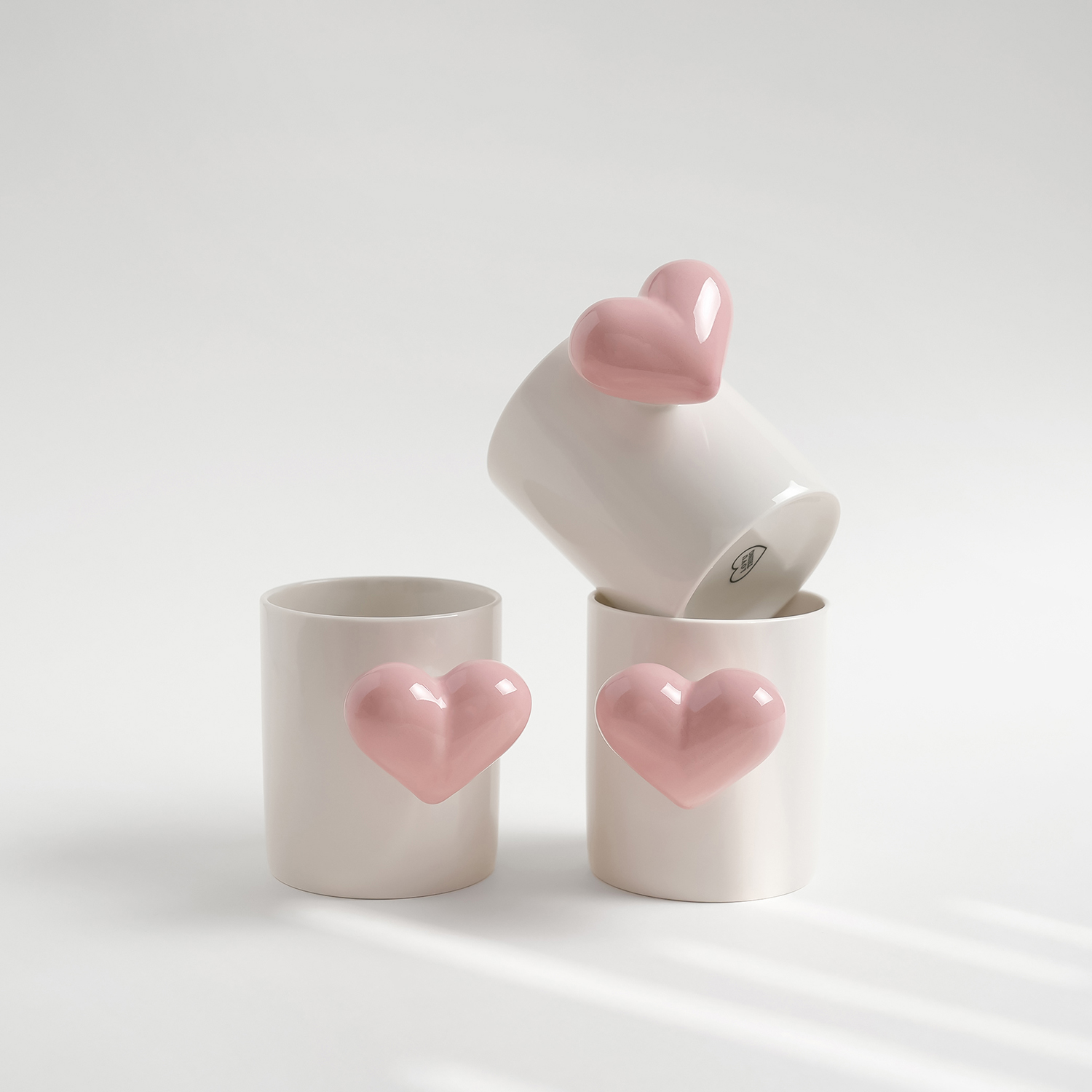크고 통통한 하트 손잡이가 포인트인 핸드메이드 머그 입니다.